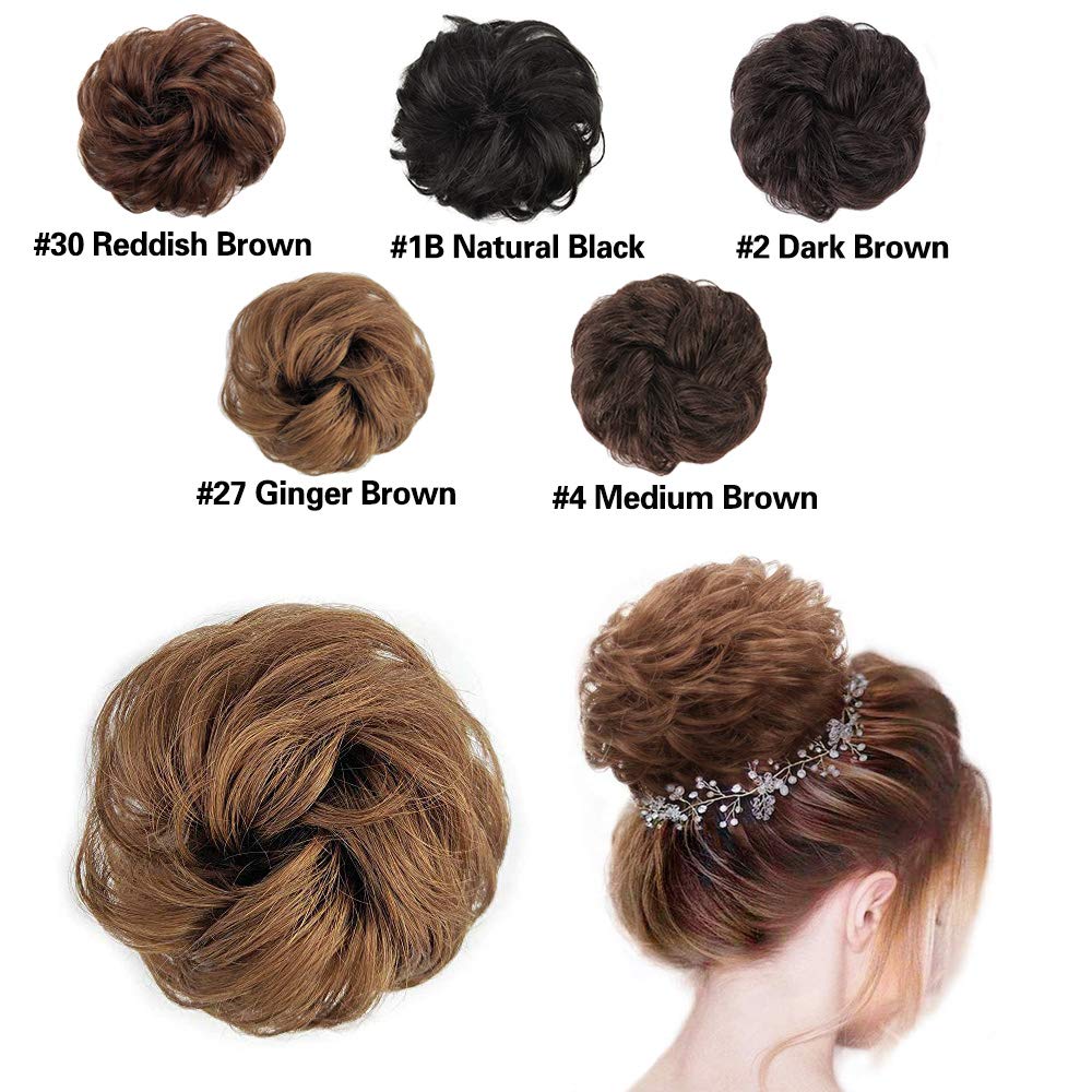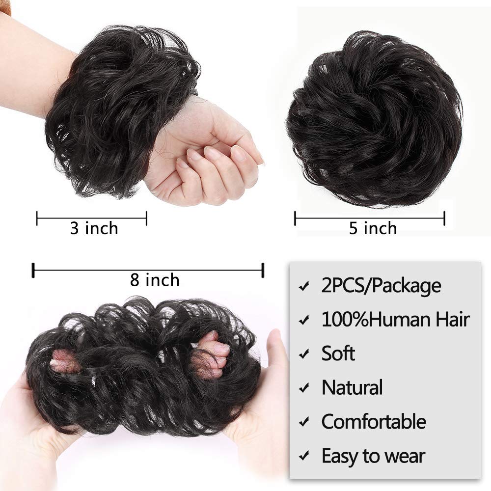 100% Really Bun Human Hair 2 PCS Messy Bun Scrunchy Wave Curly Chignon Hair Piece for Women Kids and Wedding Updo Donut Hair Clip Extension Ponytails