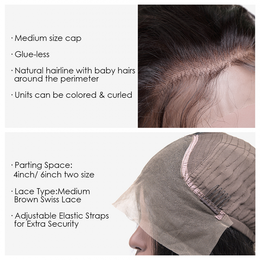 Full Lace Human Hair Wig Natural Color Free Parting For Braided Wig Making Can Be Bleached and Dyed