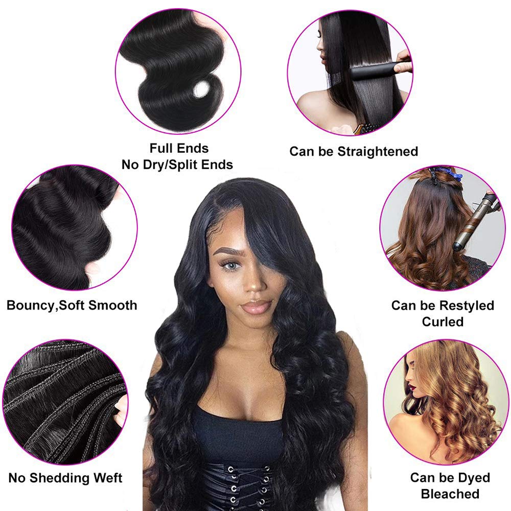 - Hair Material: 100% Unprocessed Virgin Human Hair Grade 10A (TOP QUALITY) Brazilian Body Wave Human Hair With Closure.