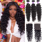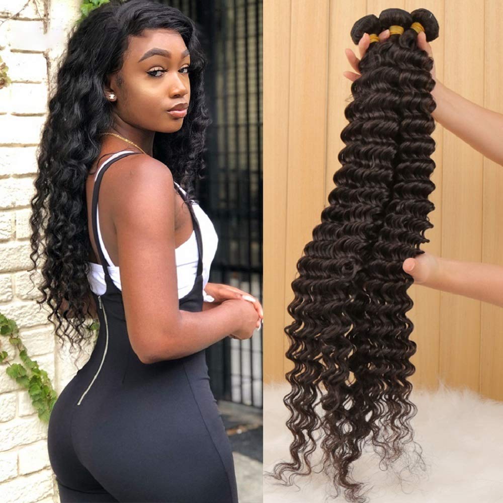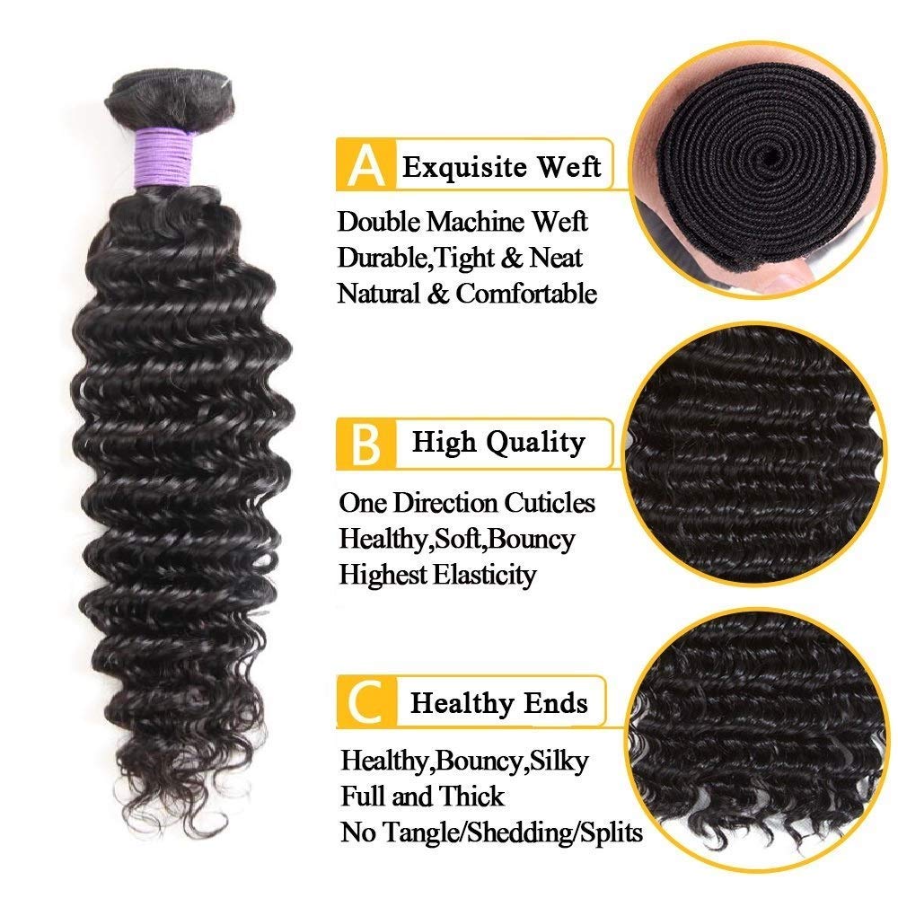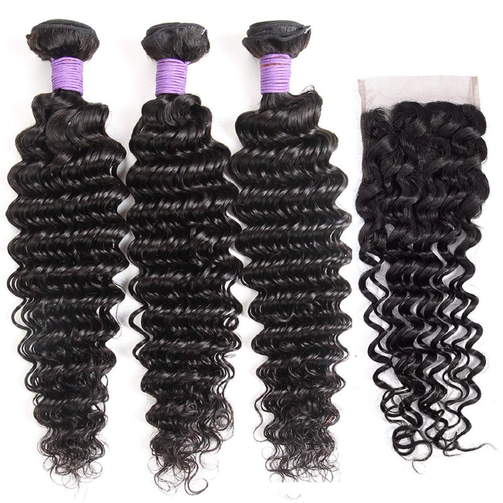 - Deep Wave Bundles with Closure Hair Materials: 10A Brazilian Human Hair Bundles with Closure, 100% Unprocessed Virgin Hair Extensions Cut from Young Girls, Healthy and Clean