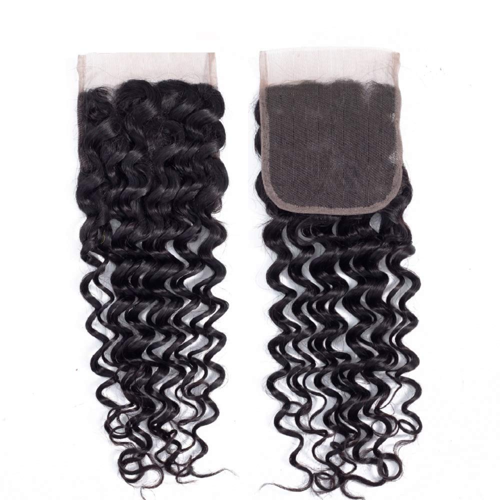 - Curly Bundles with Closure Hair Texture and Color: Brazilian Deep Wave Hair 3 Bundles with Free Part 4x4 Lace Closure, 1B Natural Black Color, Beautiful and Full Hair